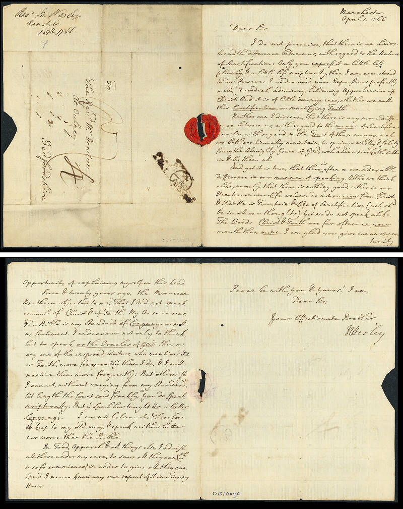 What I am sharing today is a commonly-espoused Methodist or (John) Wesleyan understanding of grace. It is based on the writings and commentary of John Wesley who founded the Methodist movement in southern England in the 1700’s. Interestingly enough, it was also around this time that John Newton wrote the familiar hymn, “Amazing Grace.” If you don’t know the story behind that hymn, check it out! It is a powerful story about God’s grace at work. And? Newton’s story that led to the hymn shares more than a few details with one of John Wesley’s own personal stories of grace. It turns out that these two Anglican clergy knew each other, and shared a few theological musings in their lifetimes. In fact, here’s a letter that John Wesley wrote to Newton on April 1, 1766.
